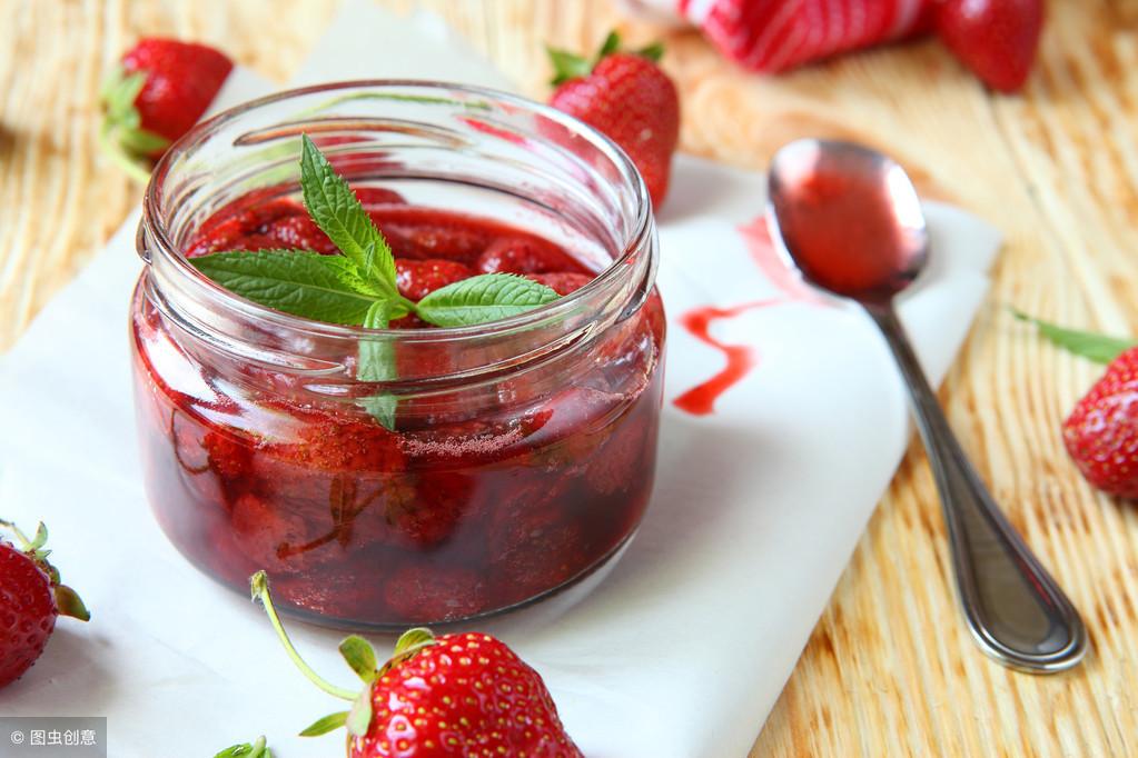 4、做成草莓酱更佳。可以把草莓切成丁,用锅炒熟,加入糖,熬成果酱,抹在面包上吃,这样比生吃要更加安全一些。